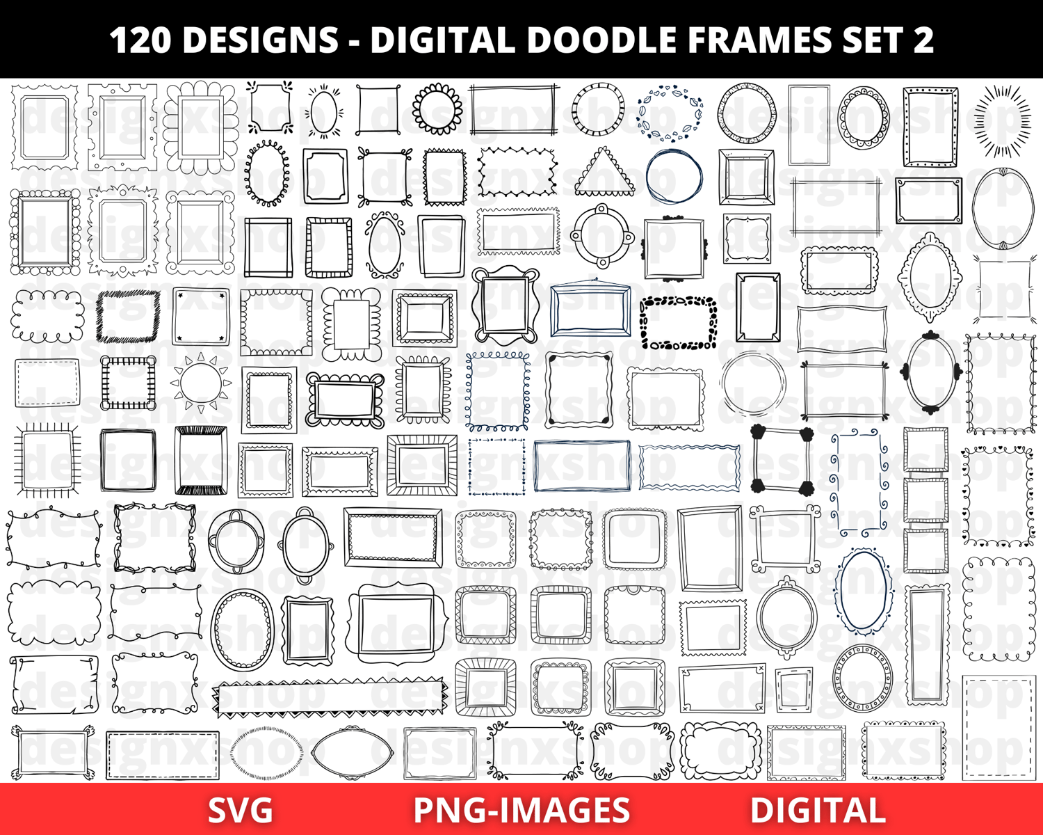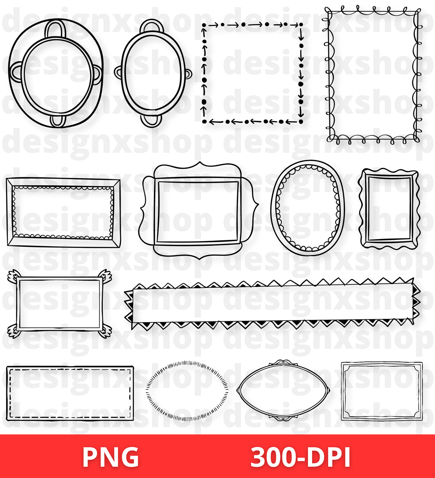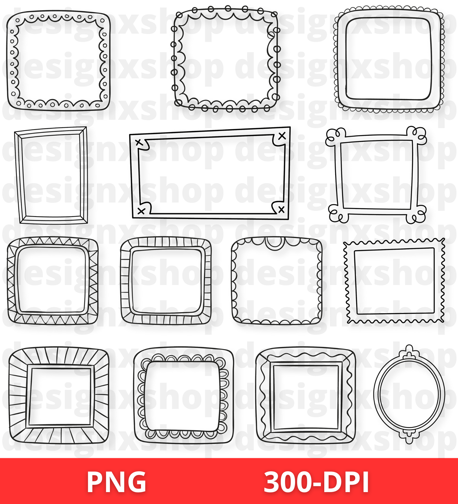 Digital frames clipart, Doodle Frames Clipart, Hand drawn frames, Border clipart, Digital doodle frames for good notes, Commercial Use