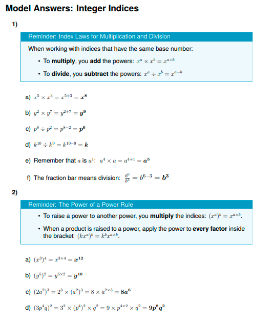 IGCSE Higher Maths: Integer Indices (Worksheet & Model Answers)