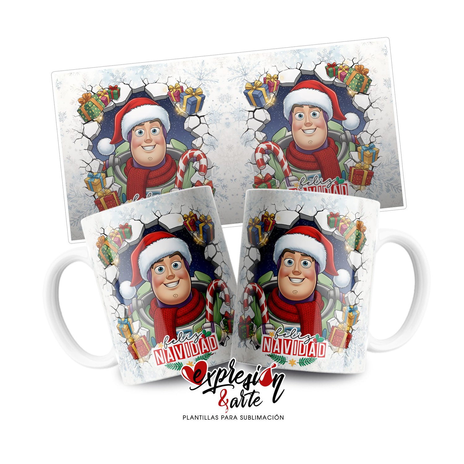 🎁 Pack 4 Diseños Originales de Navidad con Mickey, Jazmín, Daisy y Buzz Lightyear para Tazas 11oz