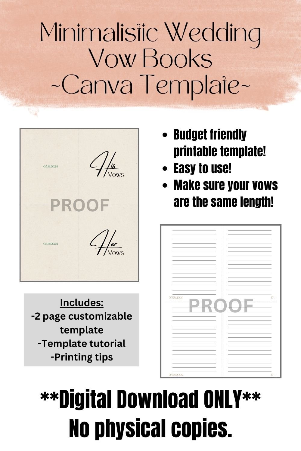 Minimalistic Vow Books Template - DIGITAL DOWNLOAD ONLY