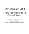 Trois Tableaux de la Cote d’ Azur is a work scored for flute, clarinet and piano with a duration of 10 minutes. The piece was commissioned my Madame Danielle Gauberti as a seventh birthday present for her husband. Each tableau is inspired by a work of art created in the Cote d’ Azur. The first movement, Le fort d’ Antibes inspired by a painting by Claude Monet displays the shimmering impressionistic qualities of the old fort high on a bluff overlooking the ocean. Henri Matisse’s Icarus, a paper cutout from his Jazz series, inspires the second tableau. Icarus is very fluid and lyrical dance. The final tableau is Night Fishing in Antibes inspired by a painting by Pablo Picasso. This work begins with a dark and mysterious opening, which gradually gets faster and faster leading to driving and rhythmic ending.