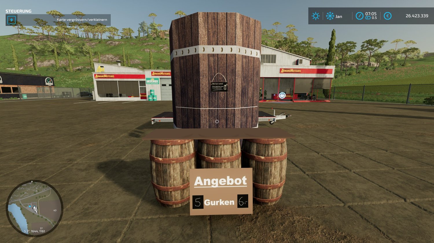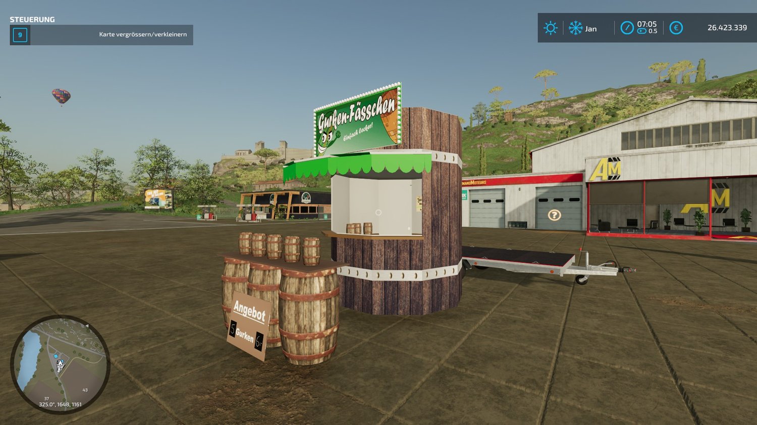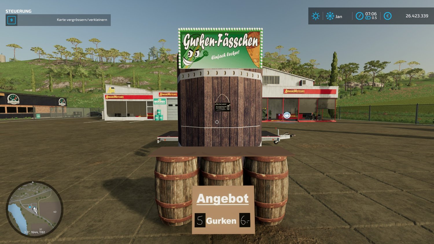 Gurkenfass Verkaufsstand. Stand kann per SimpleIC aufgebaut und abgeladen werden.