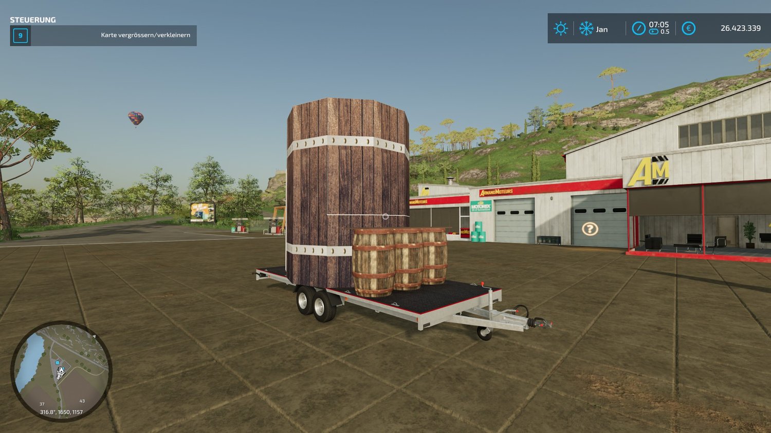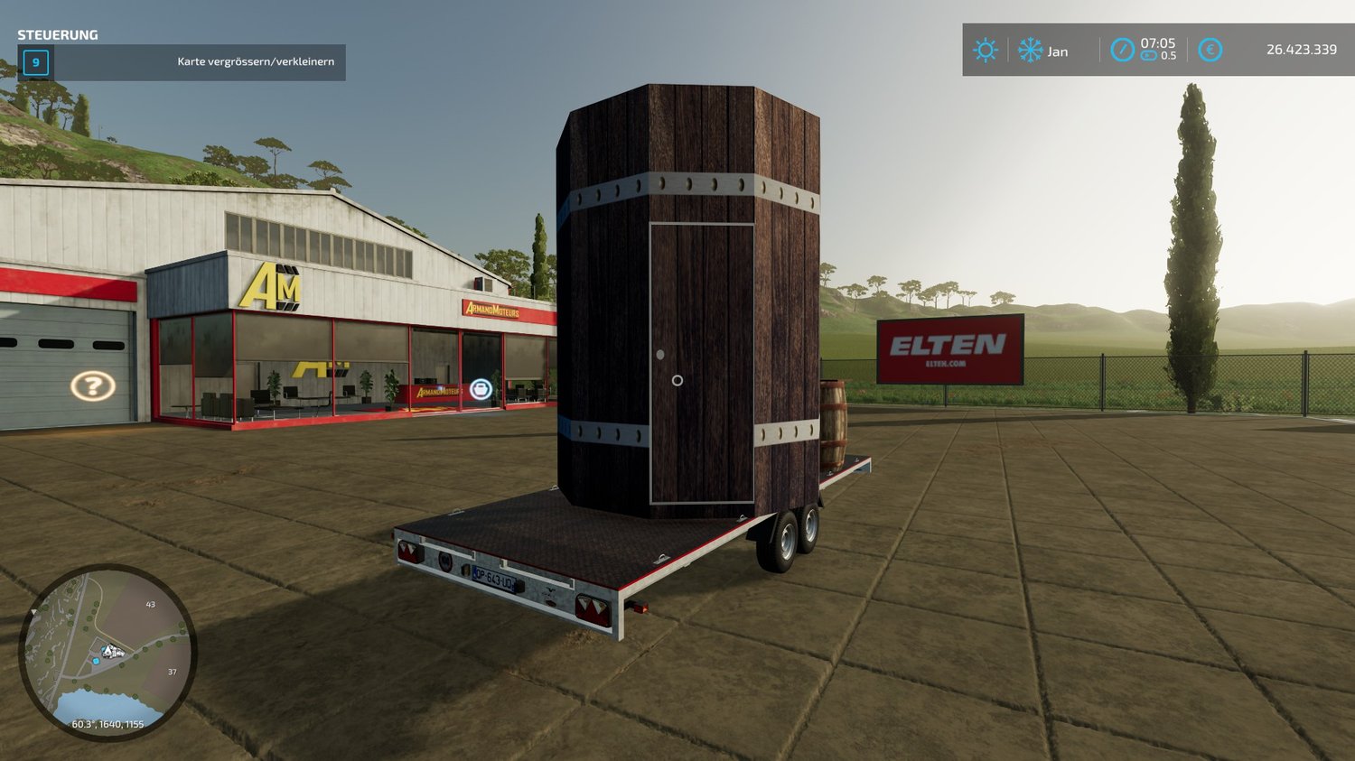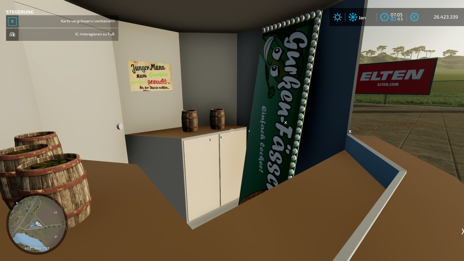 Gurkenfass Verkaufsstand. Stand kann per SimpleIC aufgebaut und abgeladen werden.