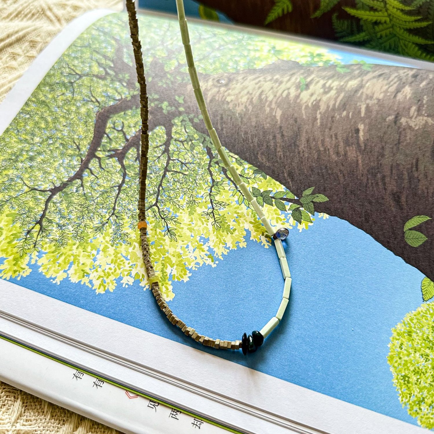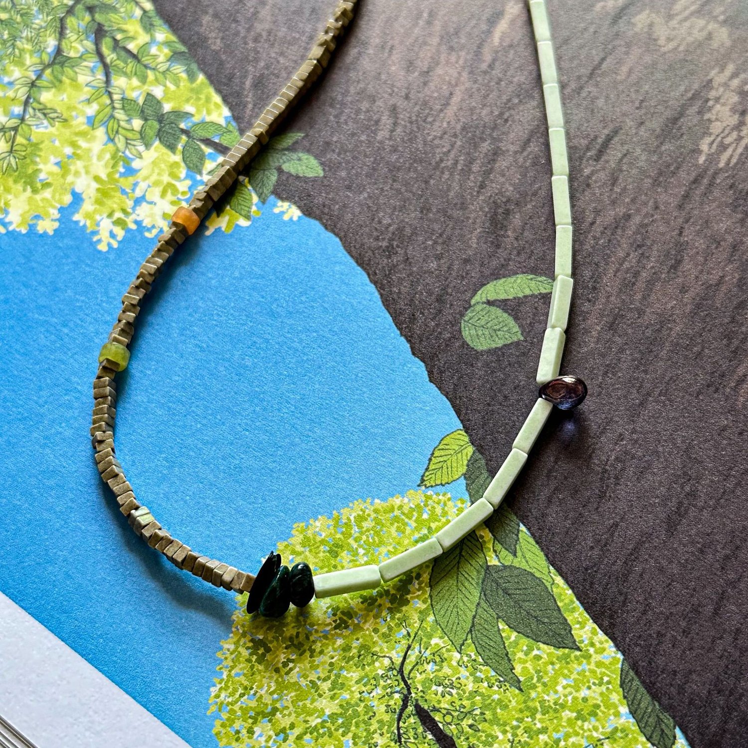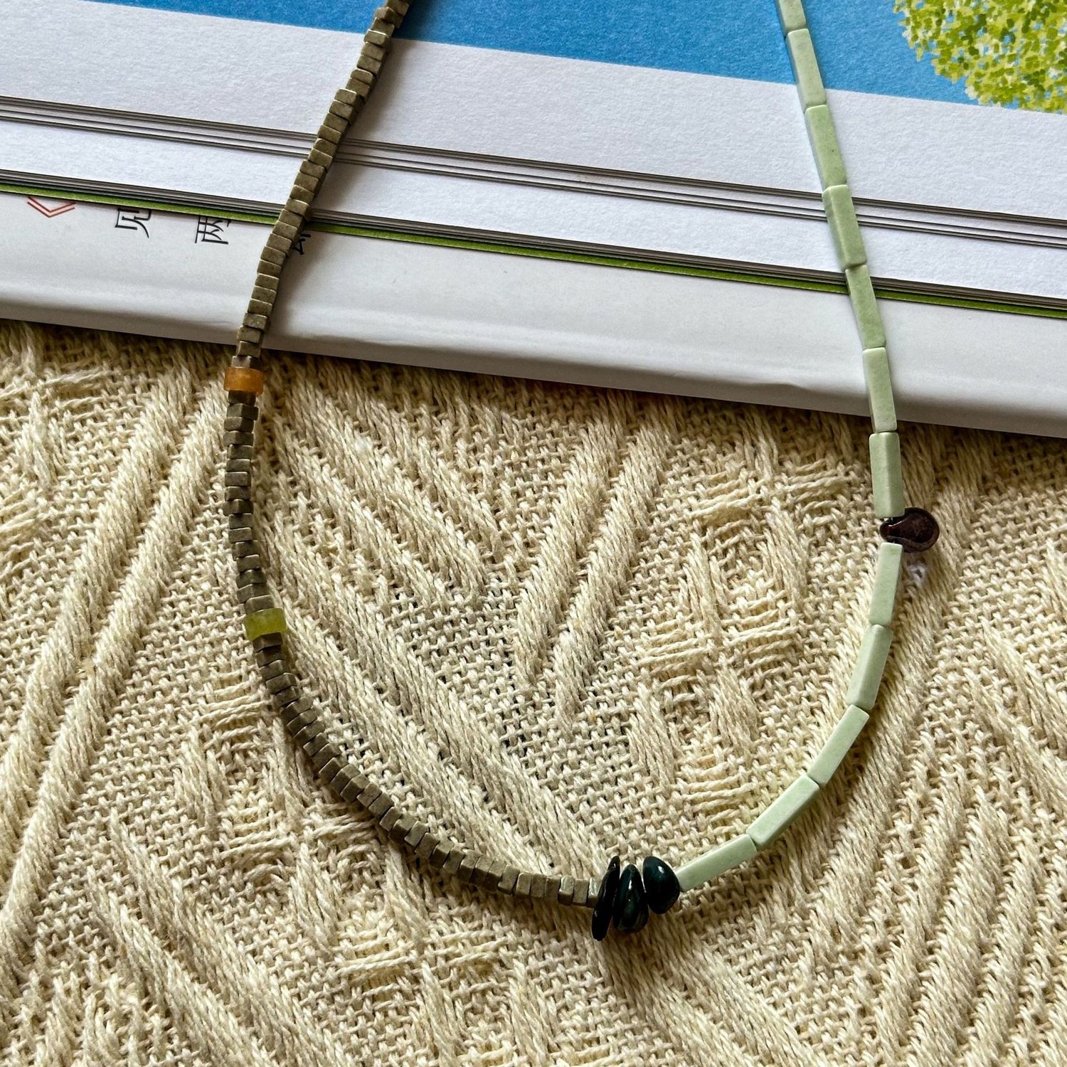 Handmade vintage-style irregular shell zirconia beaded necklace