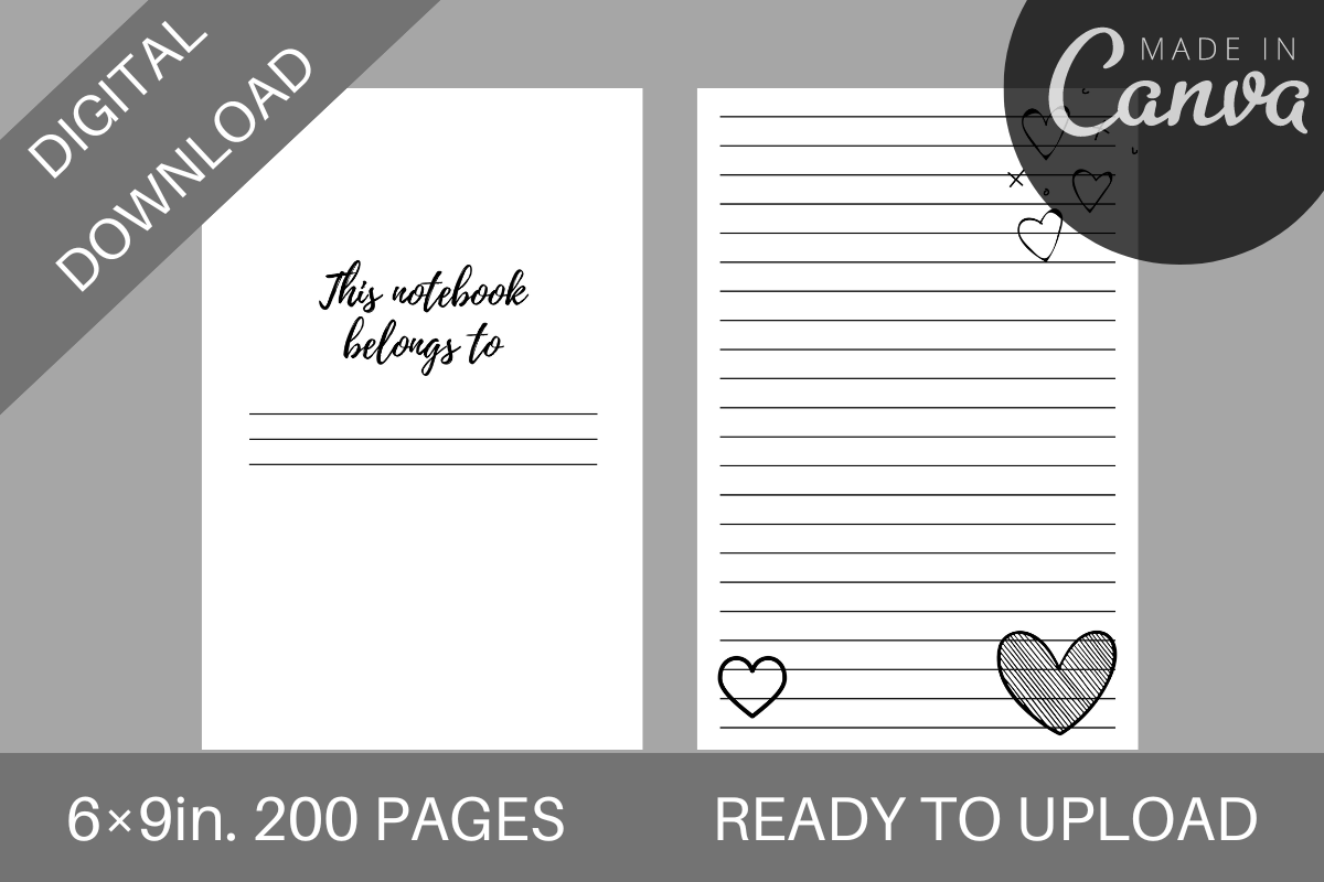 LOVE THEMED KDP LINED PAPER, LOW CONTENT BOOK FOR KDP READY UPLOAD, HEART THEMED KDP JOURNAL PAPER, JOURNAL NOTEBOOK MOCKUPS, KDP CANVA NOTE INTERIOR
