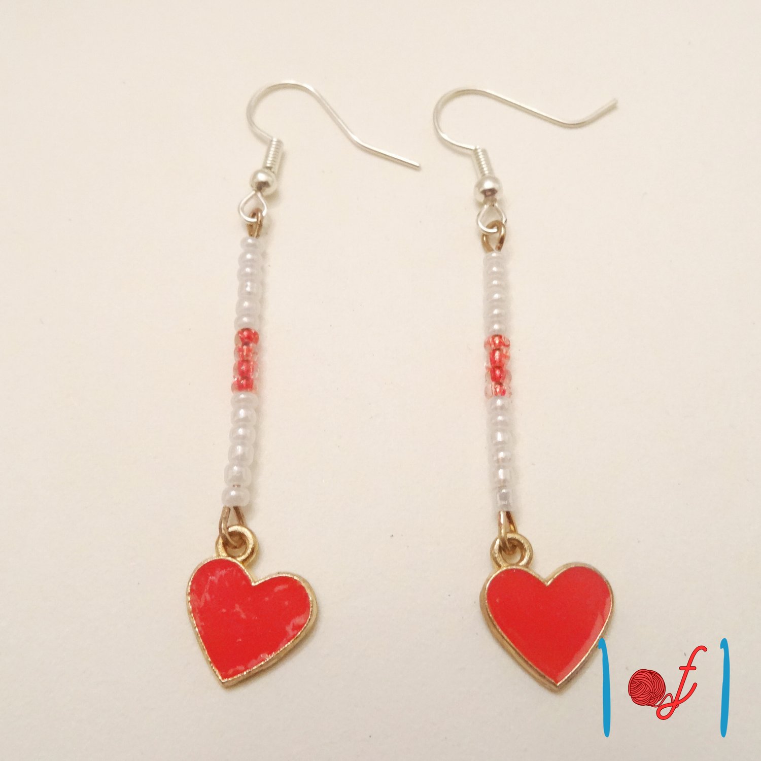 Elevate your style with these vibrant beaded dangle earrings, featuring transparent hearts and golden charms that reflect light beautifully. Perfect for any occasion, they add a unique touch to any outfit. Don’t miss the chance to shine with these eye-catching accessories!