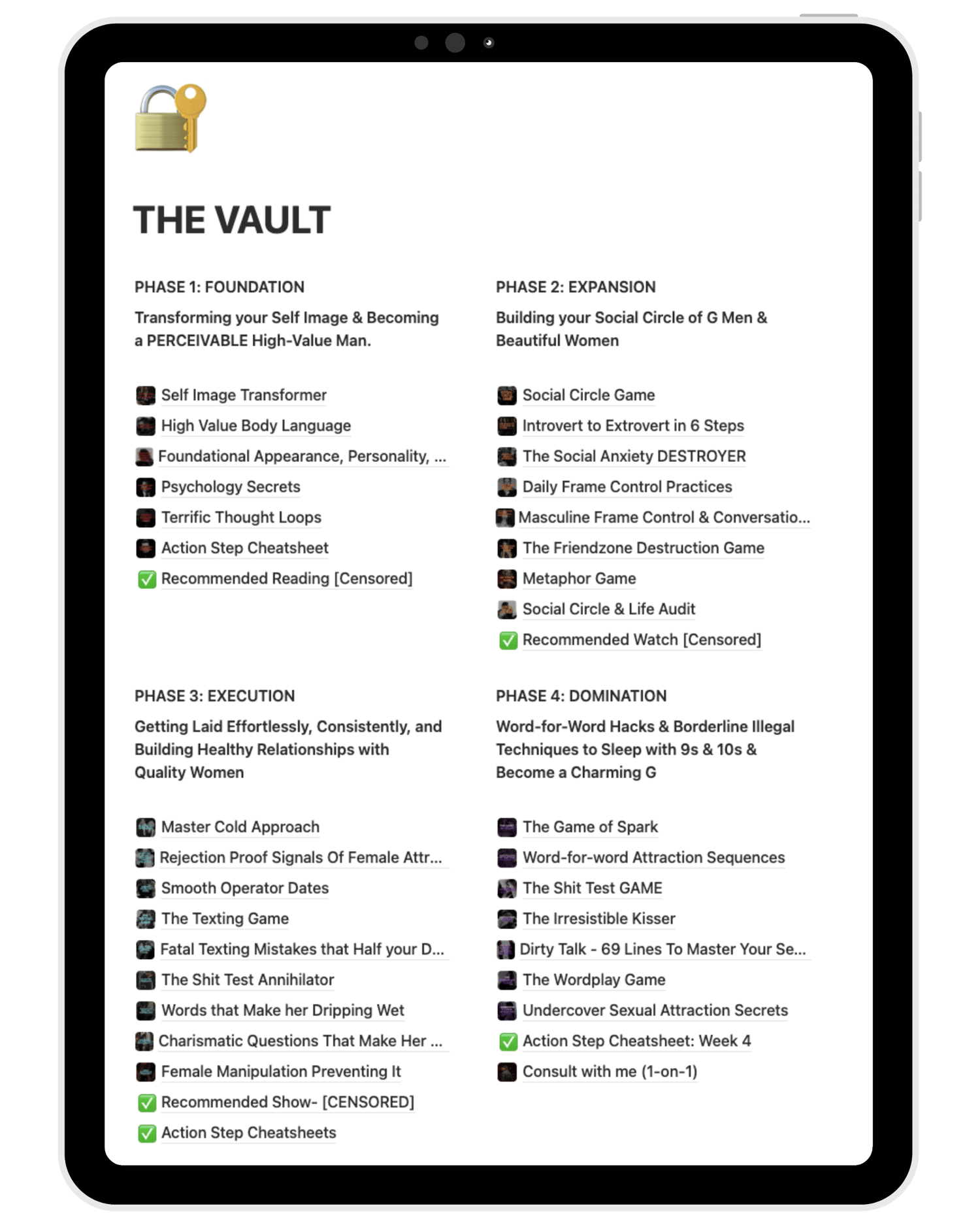The Vault transforms you into a G by removing the conditioning that's holding you back and installing the systems that make you magnetic.