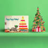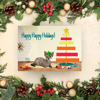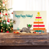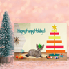 This is an adorable Christmas Holiday card that features a fancy Devon Rex cat enjoying his presents!
