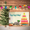 Christmas Holiday Card! Retro/midcentury modern with gray Devon Rex Cat! Instant download w/ unlimited uses! Envelope template included.