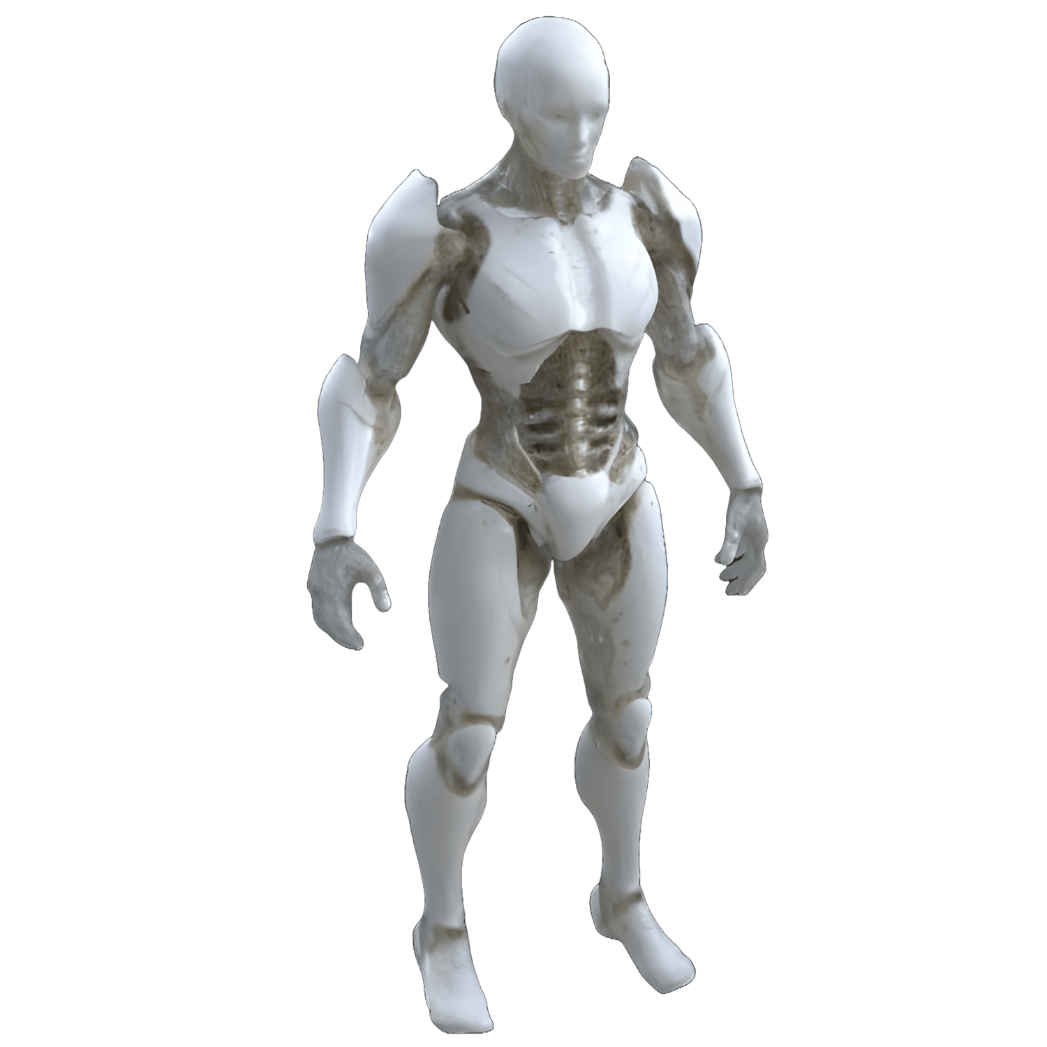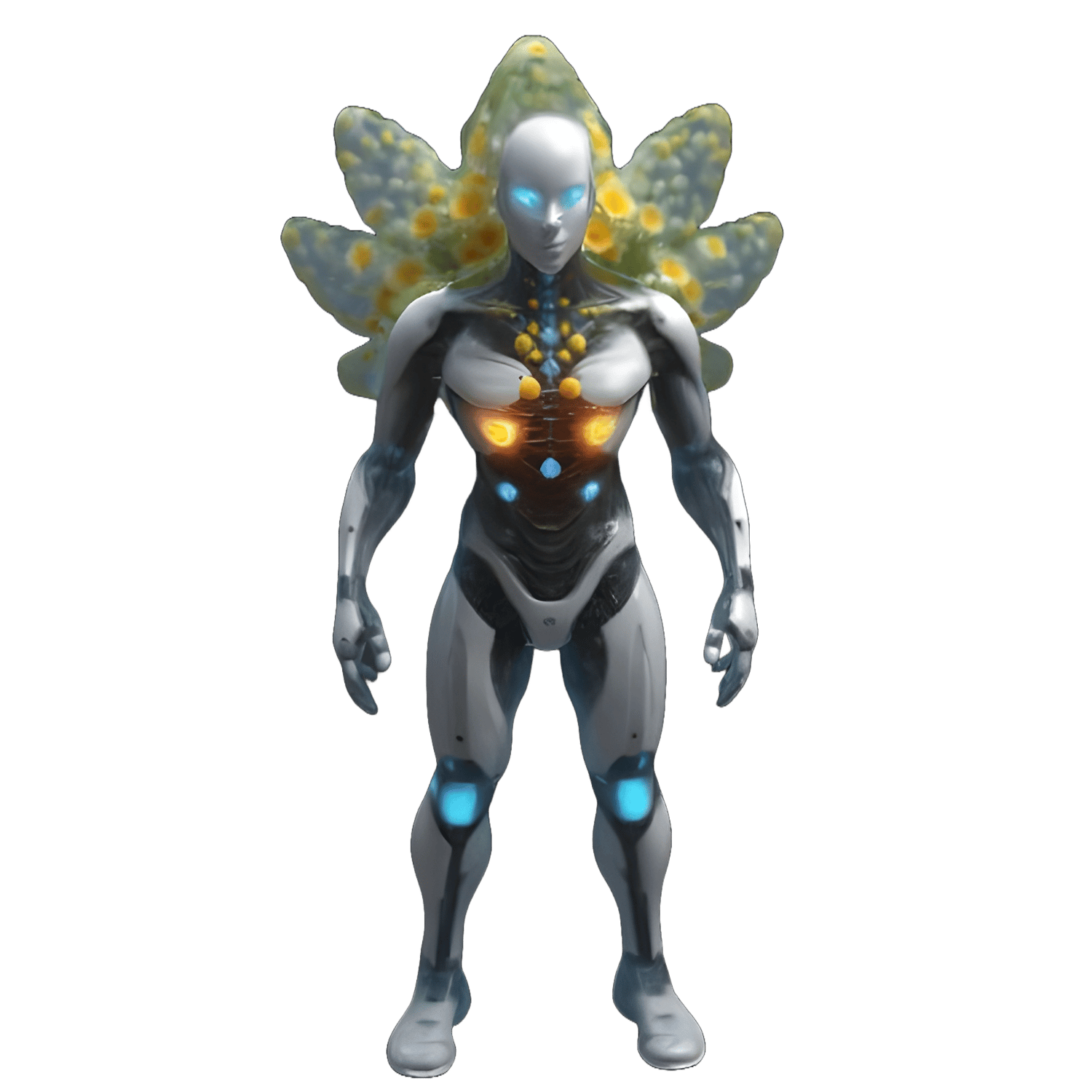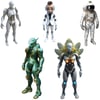 - A sleek humanoid android with exposed skeletal structure (top left)