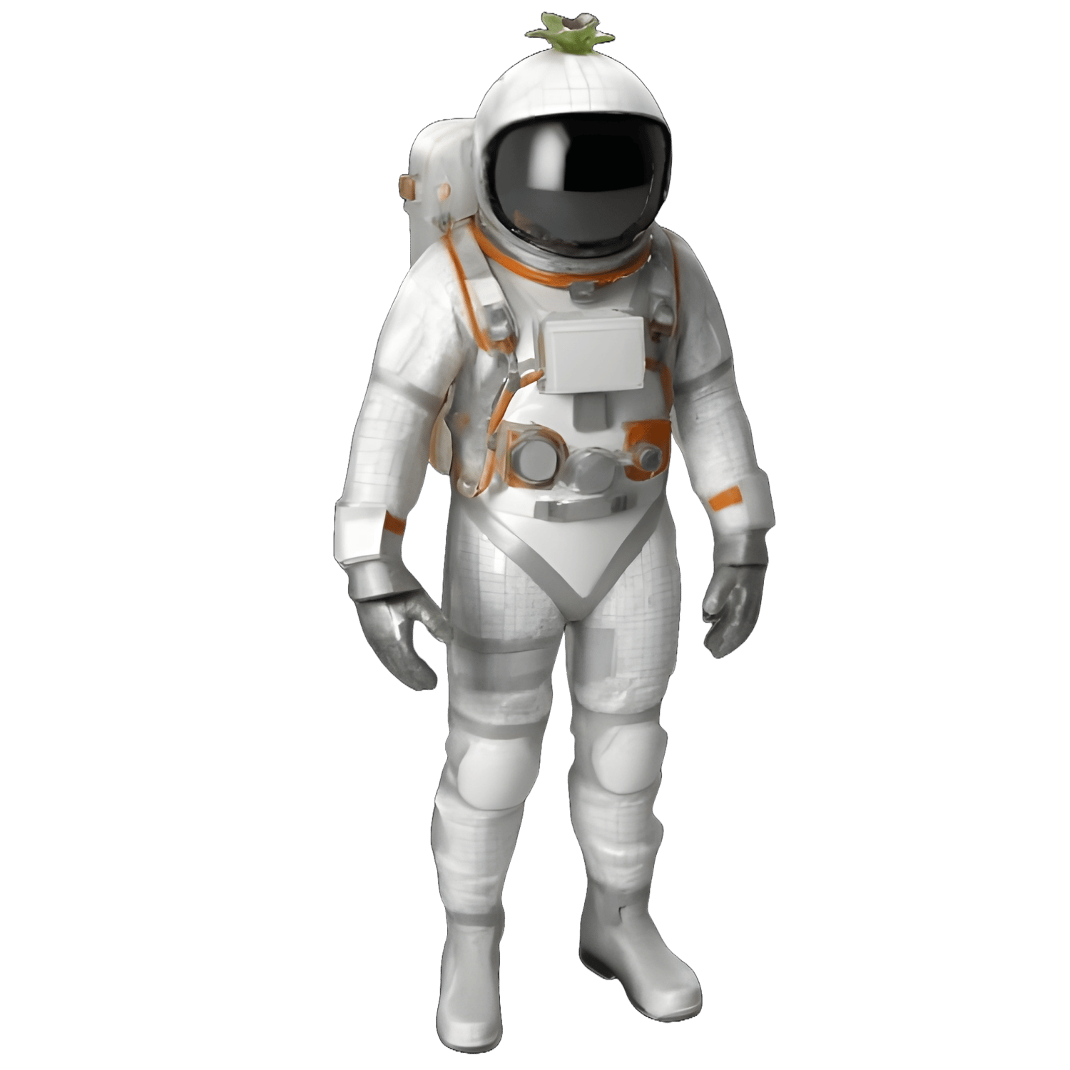 - A detailed astronaut in a traditional white spacesuit with orange accents (top right)
