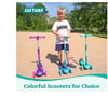 EXCITING GLOWING WHEELS: The 3 wheels are equipped with powerful LEDs, igniting a brilliant glow, captivating the young riders with its enchanting charm. Safety is never compromised, as the scooter becomes a captivating spectacle even in the dark, providing peace of mind for parents.