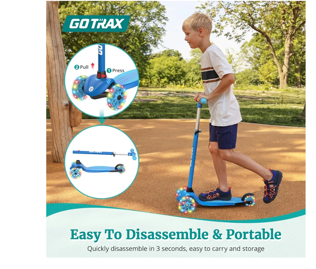 Gotrax KS1 Kids Kick Scooter, LED Lighted Wheels and 3 Adjustable Height Handlebars, Lean-to-Steer & Widen Anti-Slip Deck, 3 Wheel Scooter for Boys & Girls Ages 2-8 and up to 100 Lbs