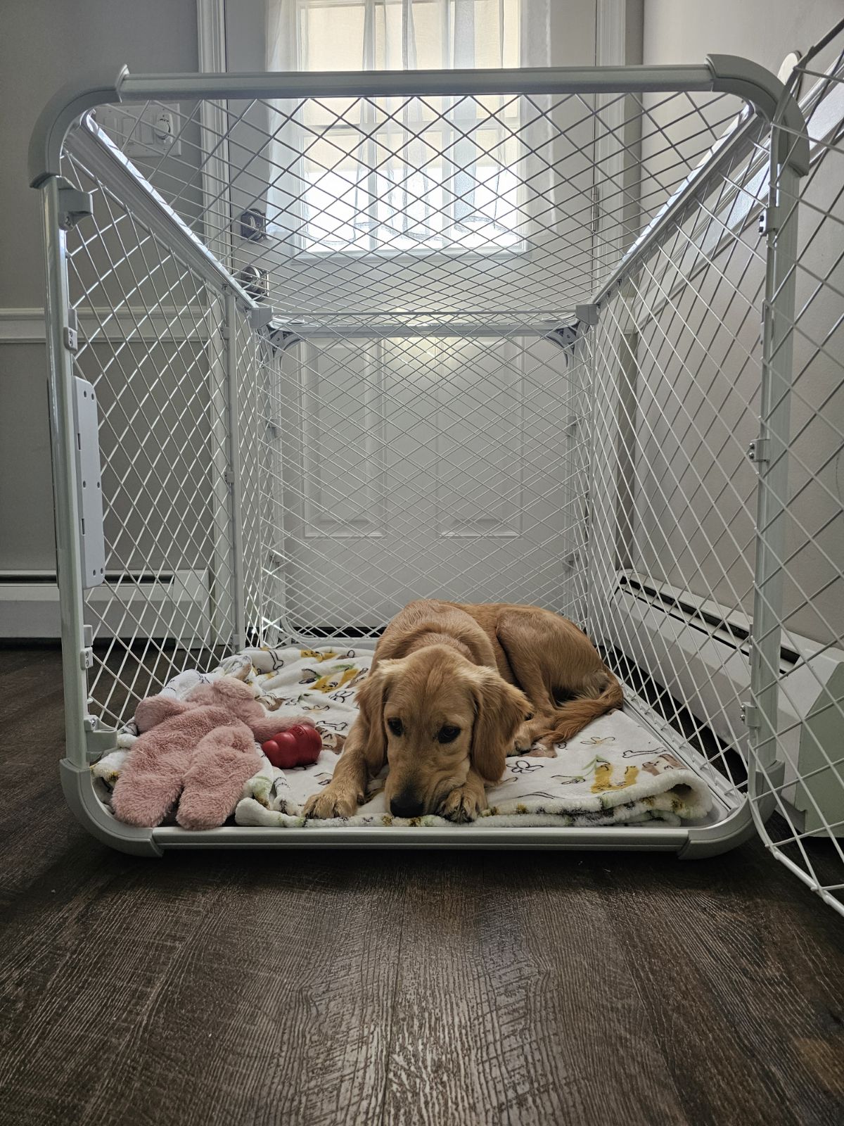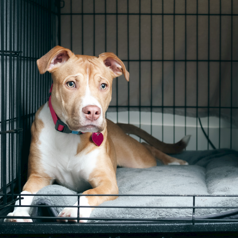 This gives your dog a safe place to stay without putting unnecessary pressure on the crate while they’re still learning to feel comfortable there.