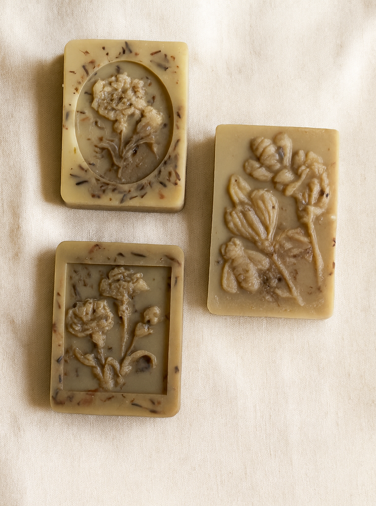 Indulge your senses with our handcrafted Botanical Bars, infused with real rose and lavender petals. Each bar features delicate floral detailing and is designed to gently cleanse and calm the skin, turning your daily routine into a moment of intentional care.