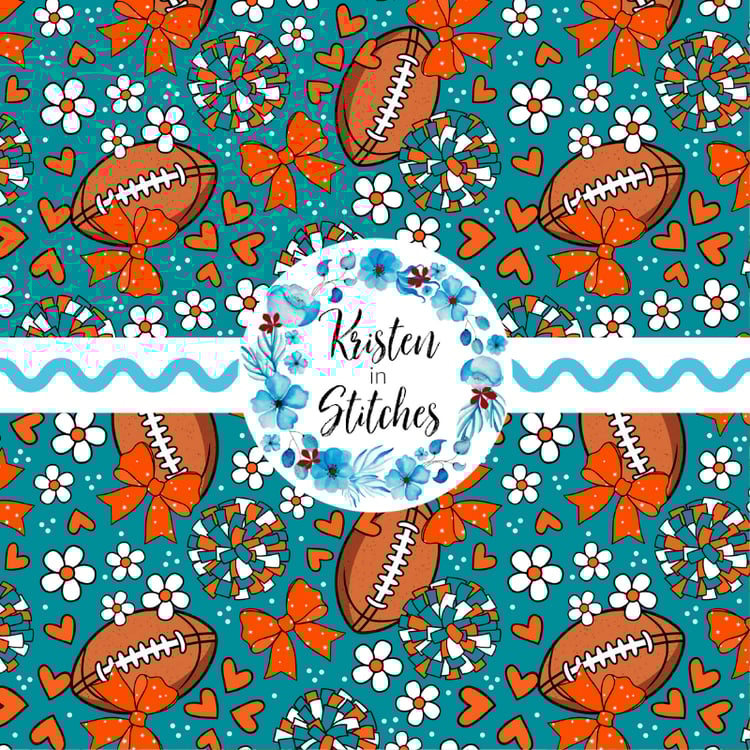 Silly Goose Football Team Spirit Seamless Pattern, Miami Dolphins Colors Orange and Aqua Blue