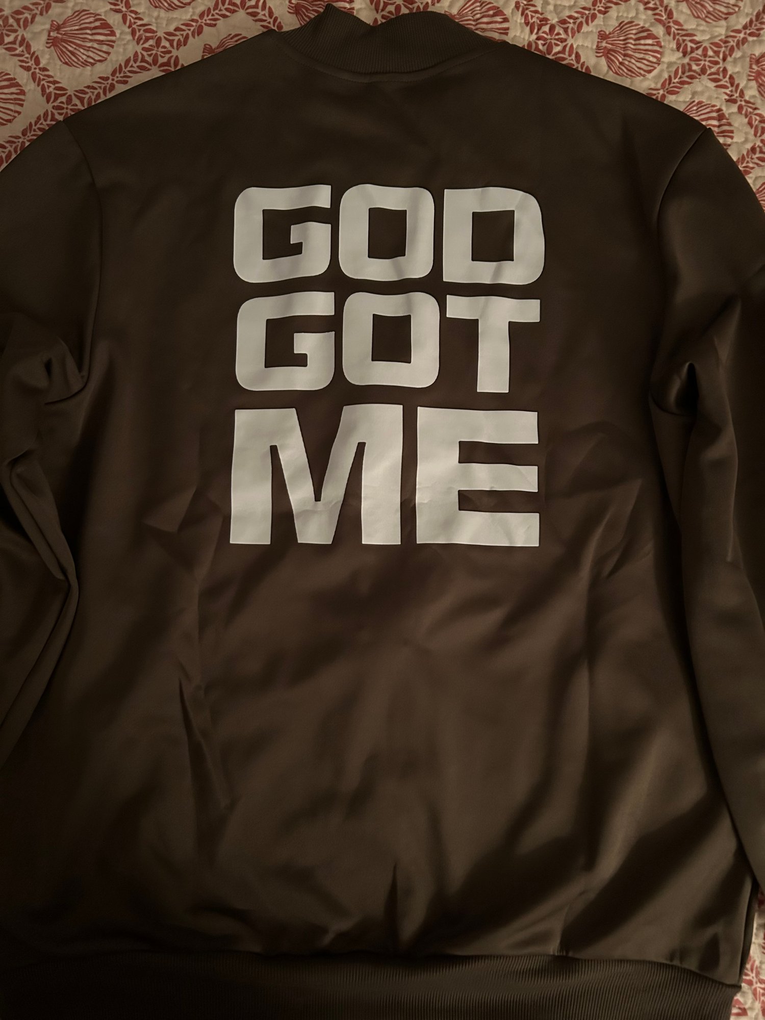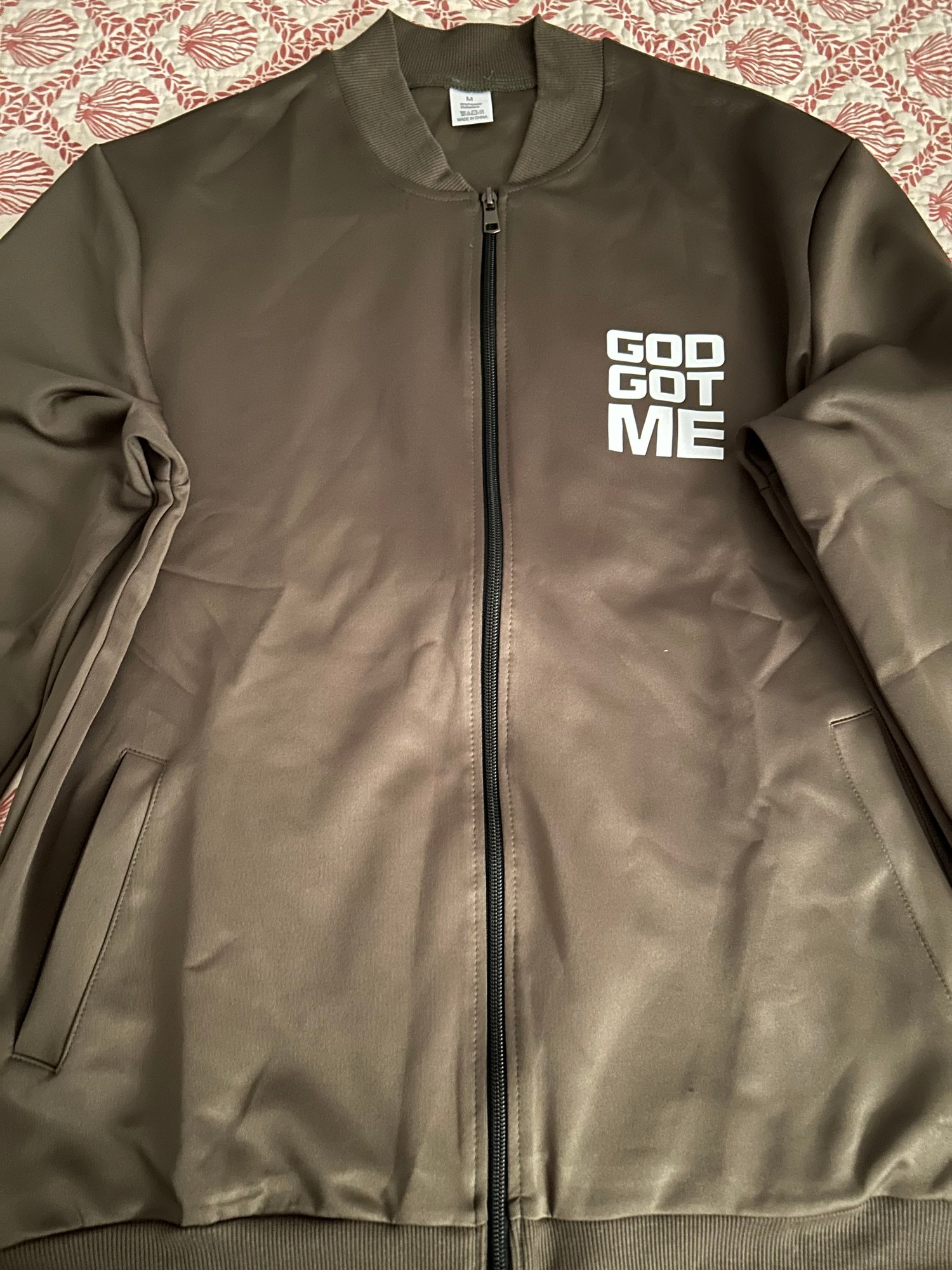 This is a hunter green nylon jacket. They are coming in black, hunter green, and red. We have different sizes available such as small, medium, large, x-large and xx-large.