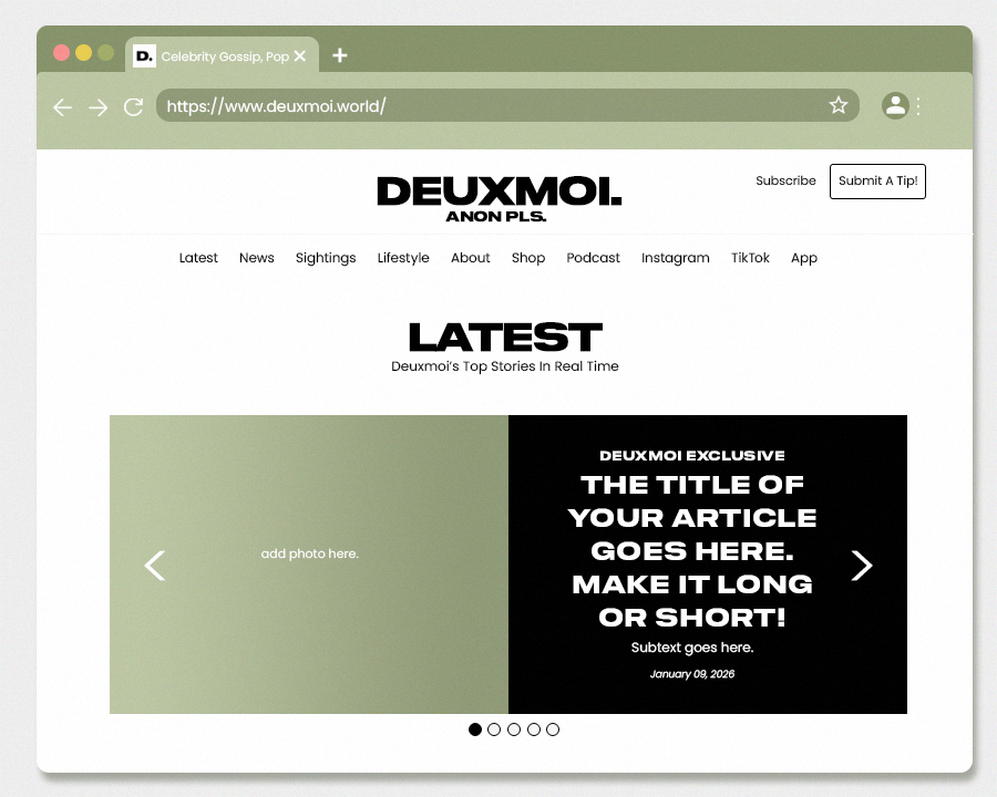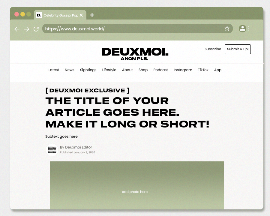 deuxmoi.psd is a photoshop template based on the anonymous account that shares unverified celebrity gossip , blind items , etc . i've made this from scratch so everything is fully customizable ! just make sure you know how to use clipping masks & have the following fonts : poppins & radwave . please do not edit & redistribute or claim as your own .