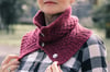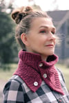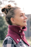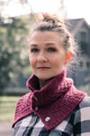 One skein of luscious alpaca makes a reversible cowl featuring softly textured stitches. The three sets of buttons attached back-to-back allow you to style this versatile neckwear with either side facing out, and partly or fully buttoned.