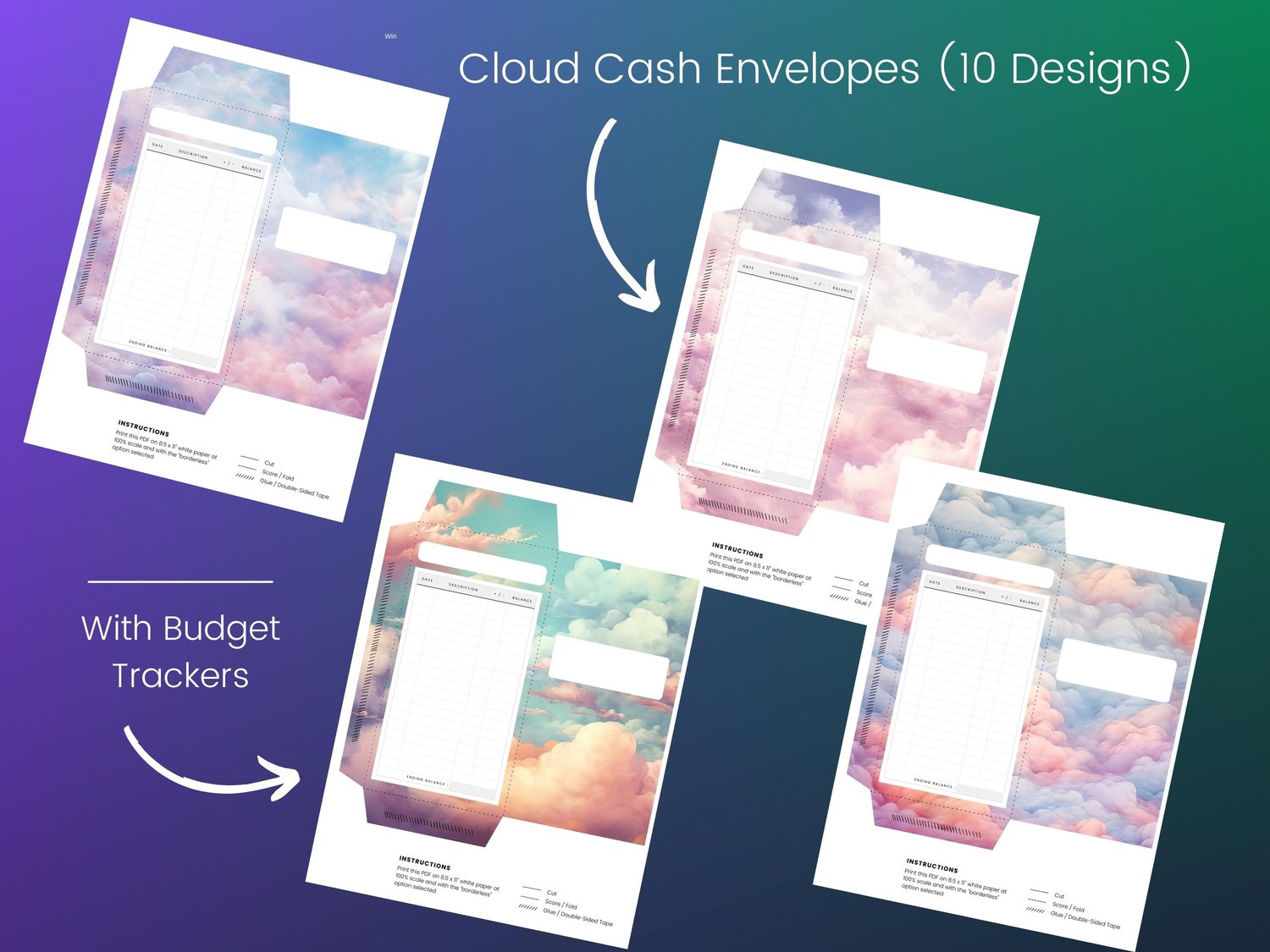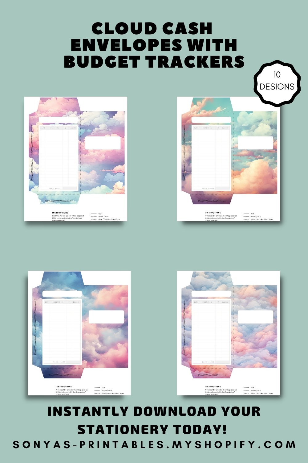 10 Printable Cloud Cash Envelopes With Budget Tracker | Pastel Cloud Cash Stuffing Envelopes | Printable Cloud Cash Envelopes With Expense Tracker | Set Of Pastel Cloud Cash Envies