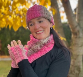 Háčkované praktické bezprstové rukavičky doplněk k zimnímu setu Samba