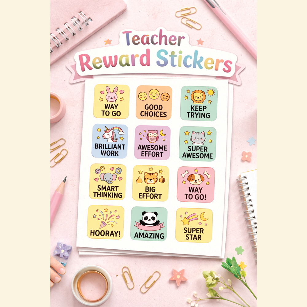 Make your students smile, stay motivated, and feel proud with these adorable Cute Animal Teacher Reward Stickers. From “Great Job!” to “Well Done!”, every sticker adds encouragement in the sweetest way 💕