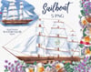 Nautical compositions with sailboats and flower garlands. Adventures summer and vacation theme