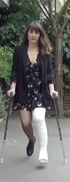 After 2 long months with 2 llc, Mélanie is recovering. The problem is her left leg. She must keep this leg casted. No problem, she wants her life back. She has to be the perfect broken girl in the place. Look how she goes out, people staring at her and how she's good with crutches.