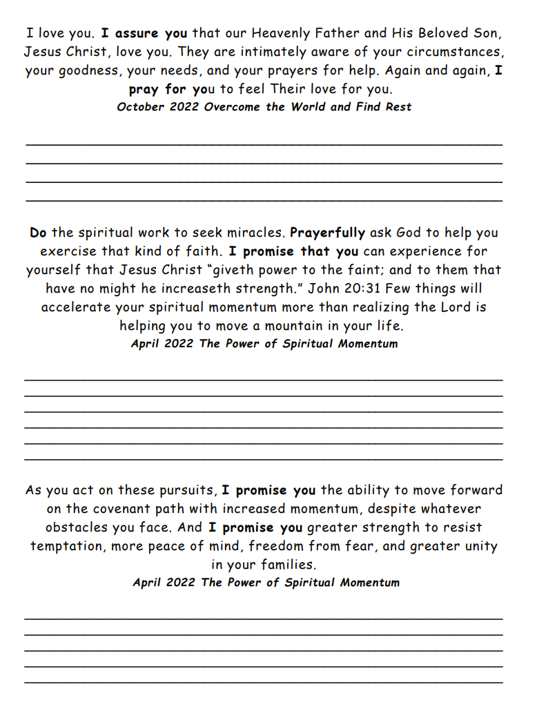 Updated President Nelson's Invites and Promises 42 Pages Yellow with Black and White