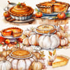 Watercolor Pumpkin Pie Clipart, Cozy Fall Clipart Bundle