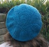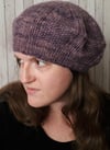 The Wagon Wheel Beret honors the simple beauty of an ordinary wagon wheel. Designed to contrast the elegant geometry of a wagon wheel against the hardy texture of the terrain over which it travels, this beret is perfect for showcasing solid or semi-solid yarn with a bit of texture. The graphic motif on the crown is softened by the extra-roomy drape of the beret.