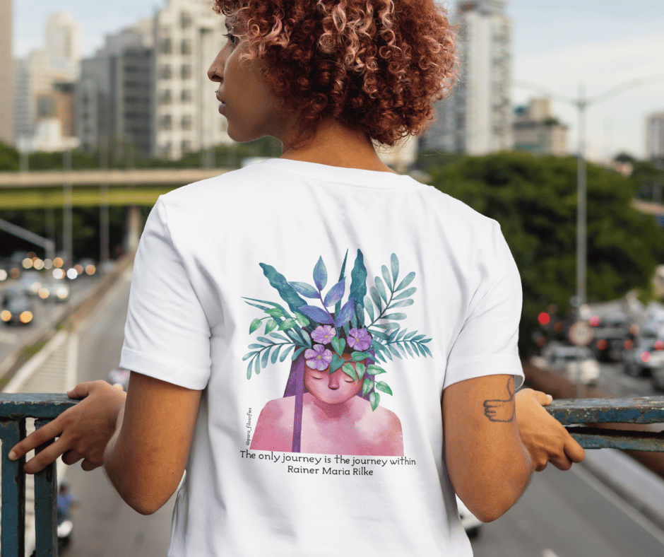 " The only journey is the journey within." Rilke Quote with Floral Art – Inspirational & Poetic Gift