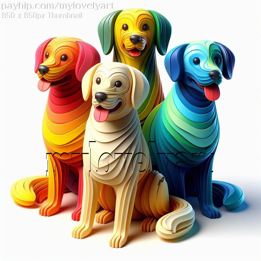 Canine quartet, united in harmony, pause for a playdate in this captivating digital art landscape. Bask in the vivid colours and minimalist wonderland, as these four-legged friends share a moment of serenity, inviting you to join their joyride." πΎππ§© #CanineCoexistence #DigitalArtDwellings #ColourfulCollaboration #UnfurrowedBrows