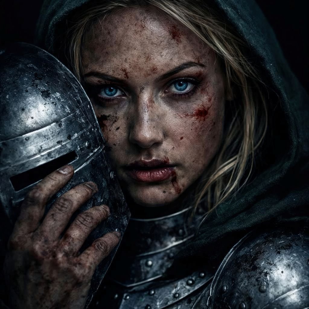 This is the version of me you don’t meet at a party. You meet her after the clash—when the air still tastes like iron, and the world has gone quiet enough to hear your own heartbeat.