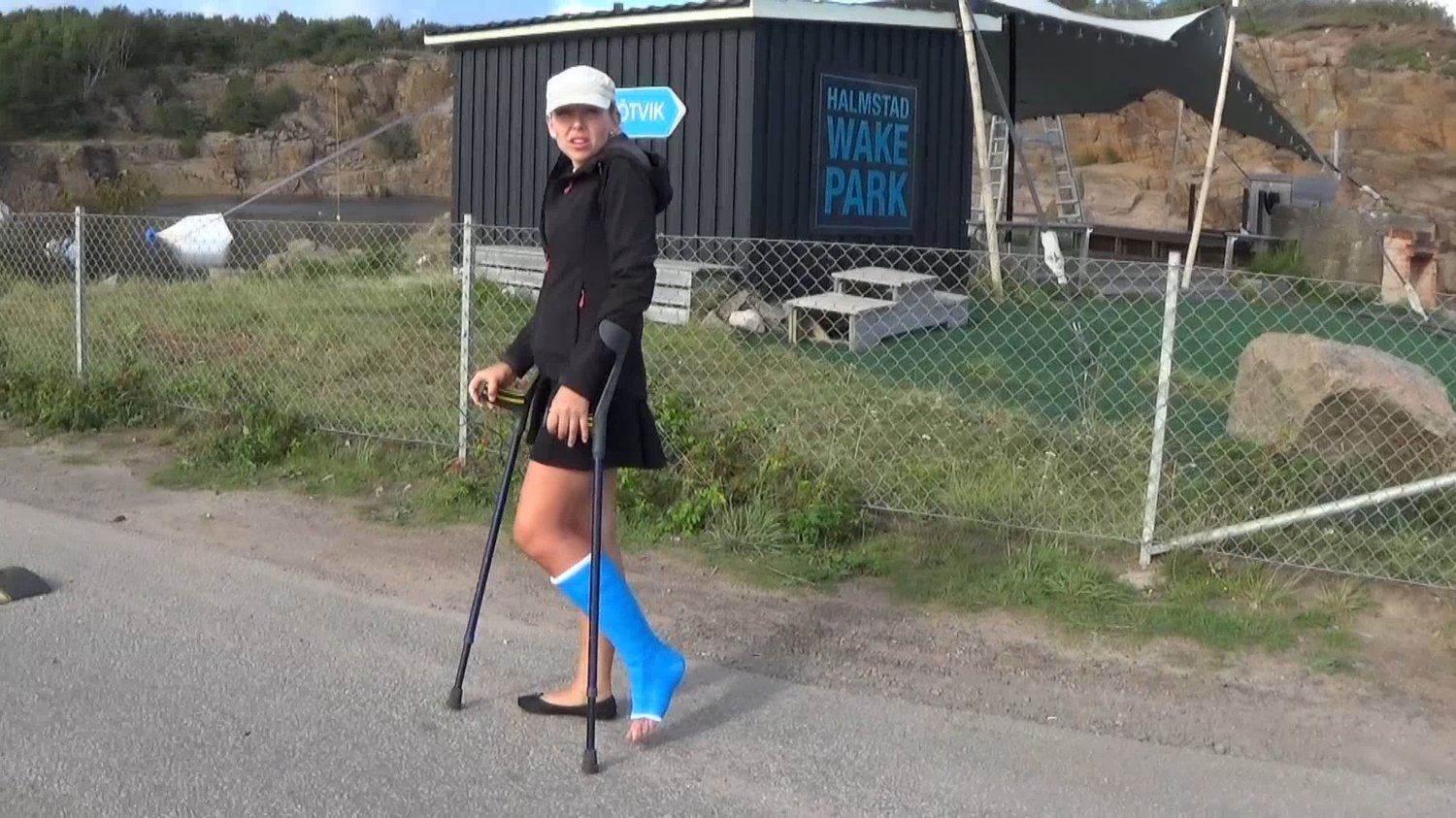 With a blue SLC crutch Rose with near the harbor when a cyclist comes cycling by and looks to follow Rose with his eyes but who would not have done it when a beautiful woman with a SLC came towards you.The sun disappears into the clouds and it starts to blow more and more so Rose turns around and jumps towards the parked car.