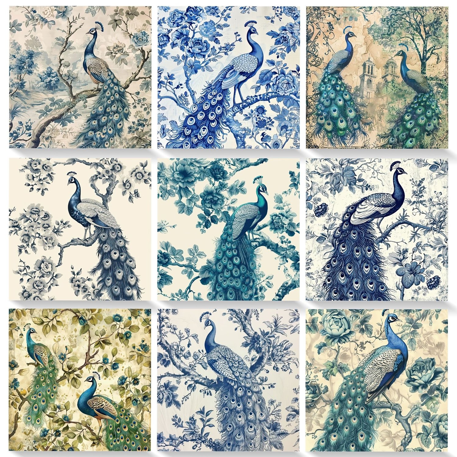 Peacock Toile Digital Paper | Set of 42 jpg Files