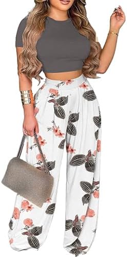 - Features: Short sleeve round neck crop tops, printed long pants for women, wide leg, relaxed-fit, various printed style tops, fashion&stylish, plus size, 2 piece outfits for women, two piece outfits for women, lounge sets for women, vacation outfits for women, sweat suits for women 2 piece, matching sets for women, womens loungewear set.