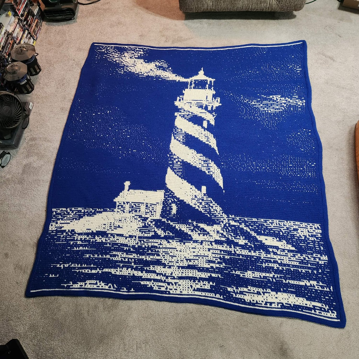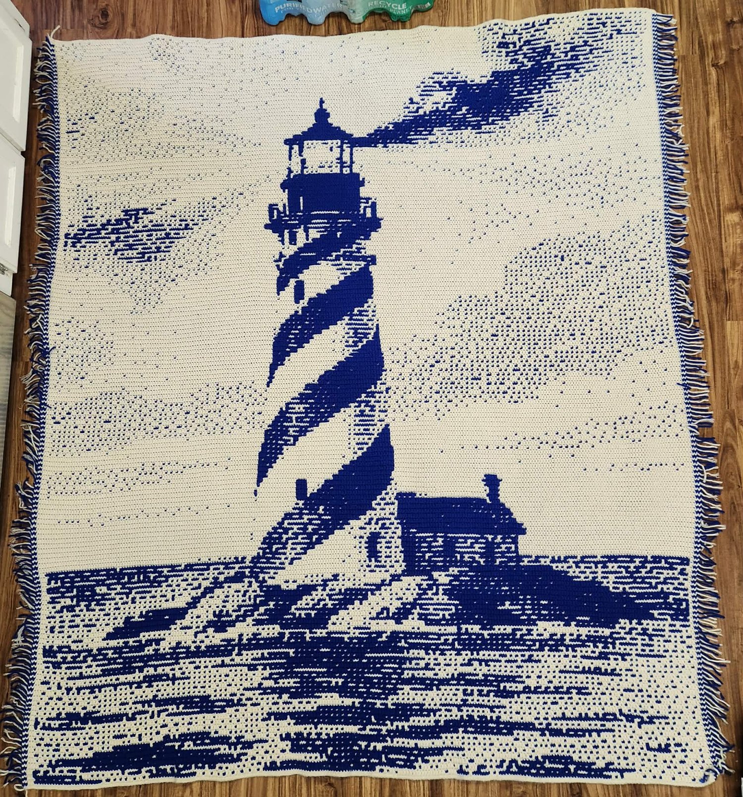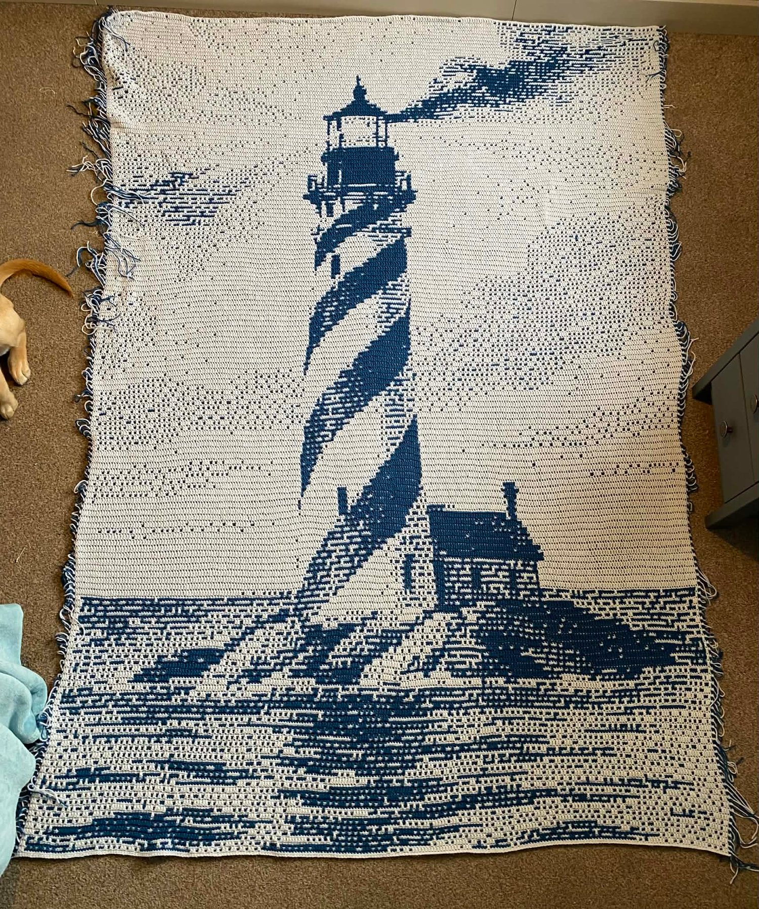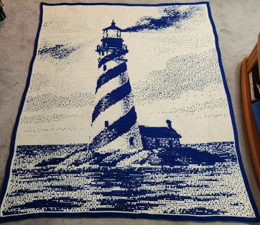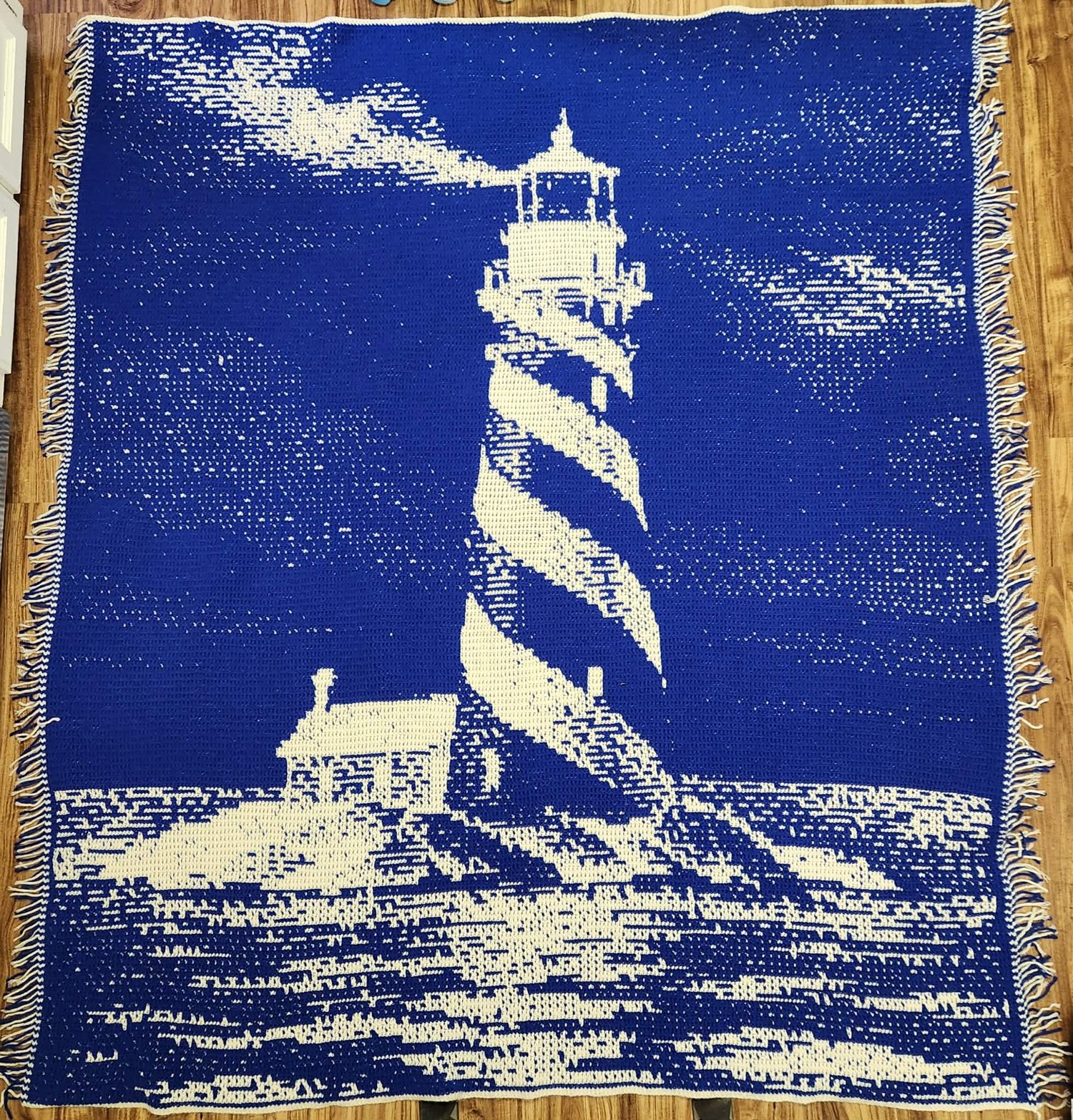 Overlay Mosaic Crochet Bedspread, LIGHTHOUSE, written pattern row by row, Big Chart with Xs, PDF
