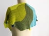 This shawl is constructed in 6 nearly identical modular sections, forming an octagonal crescent. There are 5 sizes from shoulder warmer to generous wrap, each available in either a 3-color or 5-color version! Garter stitch paired with simple increases and decreases keeps it relaxing. A slip-stitch selvage edge makes picking up stitches easy, while an i-cord cast on, edgings, and bind offs smooth out the transitions between sections.