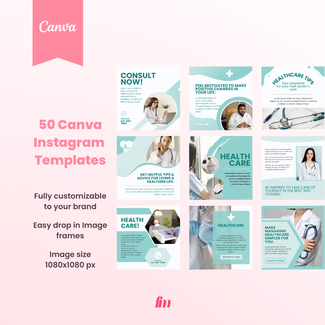 - 50+ Professionally Designed Instagram Templates: Perfect for showcasing healthcare services, tips, and promotions.