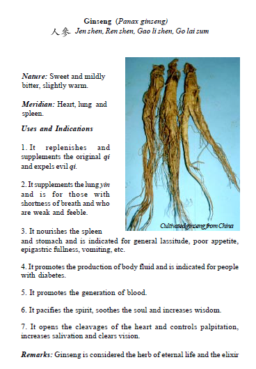 To the Chinese taking food and treating disease with medicine share the same principle. The Chinese, since ancient days, have identified a number of herbs that can supplement and tonify qi, blood, yin and yang. The wise use them to help maintain their health.