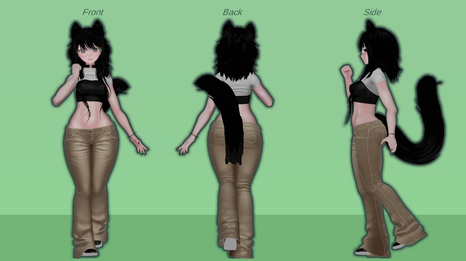 ✧Bodysuit, Tank, Garter Belt, Crop top, Soes, Yoga Pants, Bra, Panties, Sweater, Socks, Top, Thong, Shorts, Jeans, Choker, Mask, Band-aids, Glasses, Piercings, Rings, Bracelets, Cat and Dog animal parts, And Three Hair Styles