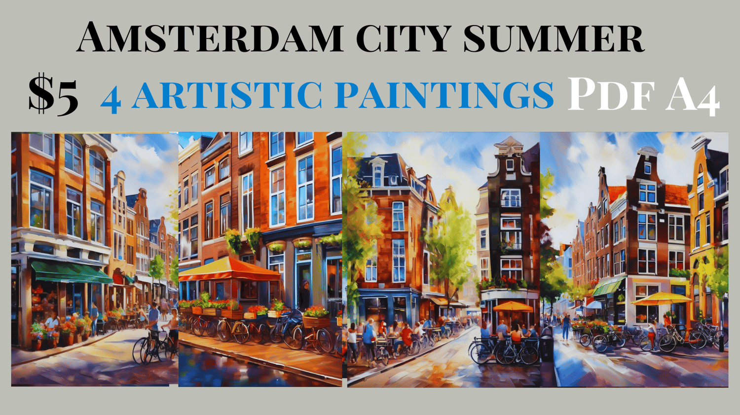 city of Amsterdam, Netherlands, streets, cafes, passing by, the beauty of summer, oil colors.6