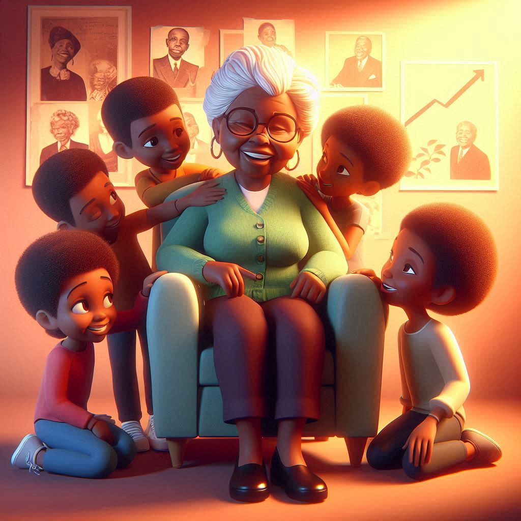 "Grandma Rose's Tales: Celebrating Black History" is a heartwarming story that unfolds in the cozy embrace of Grandma Rose's home. As she gathers her grandchildren, she shares inspiring stories of resilience and triumph, weaving together the legacy of Black history. Through her animated storytelling, the children's wide-eyed wonder, and the reflection on personal experiences, the narrative captures the warmth, love, and pride of a family honoring Black History Month. This story beautifully portrays the generational transmission of strength and hope, as Grandma Rose's words kindle a deep appreciation for the rich history and enduring spirit of the Black community.