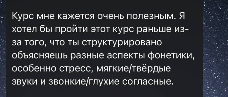 “Her explanation of palatalization finally made the ‘soft vs. hard’ sounds make sense.”