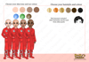 three different skin tones, three eye colours and 6 hair colours