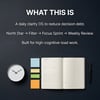 - Decision Filter (3-Gate) to block noise before it enters your day