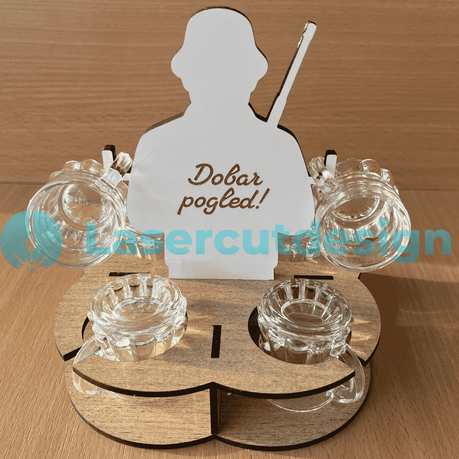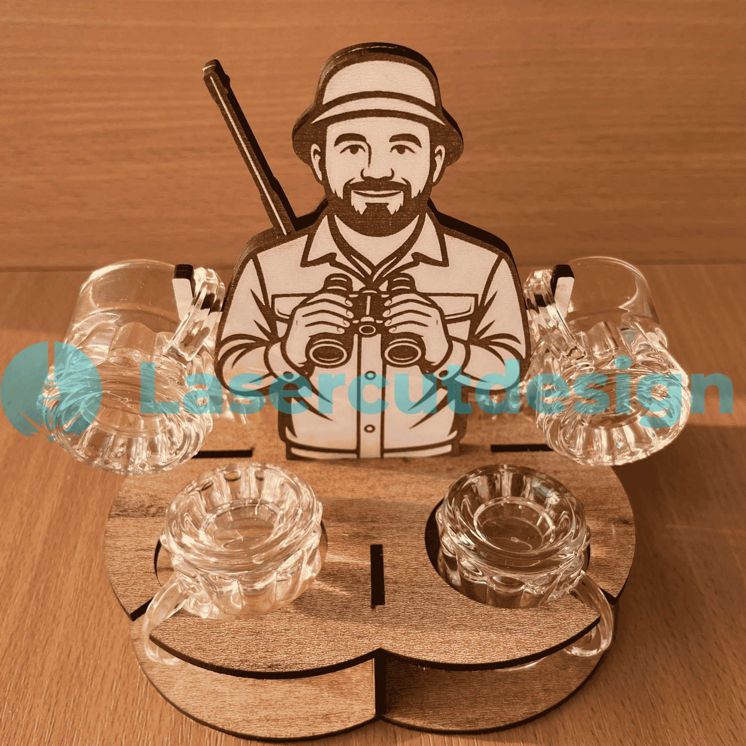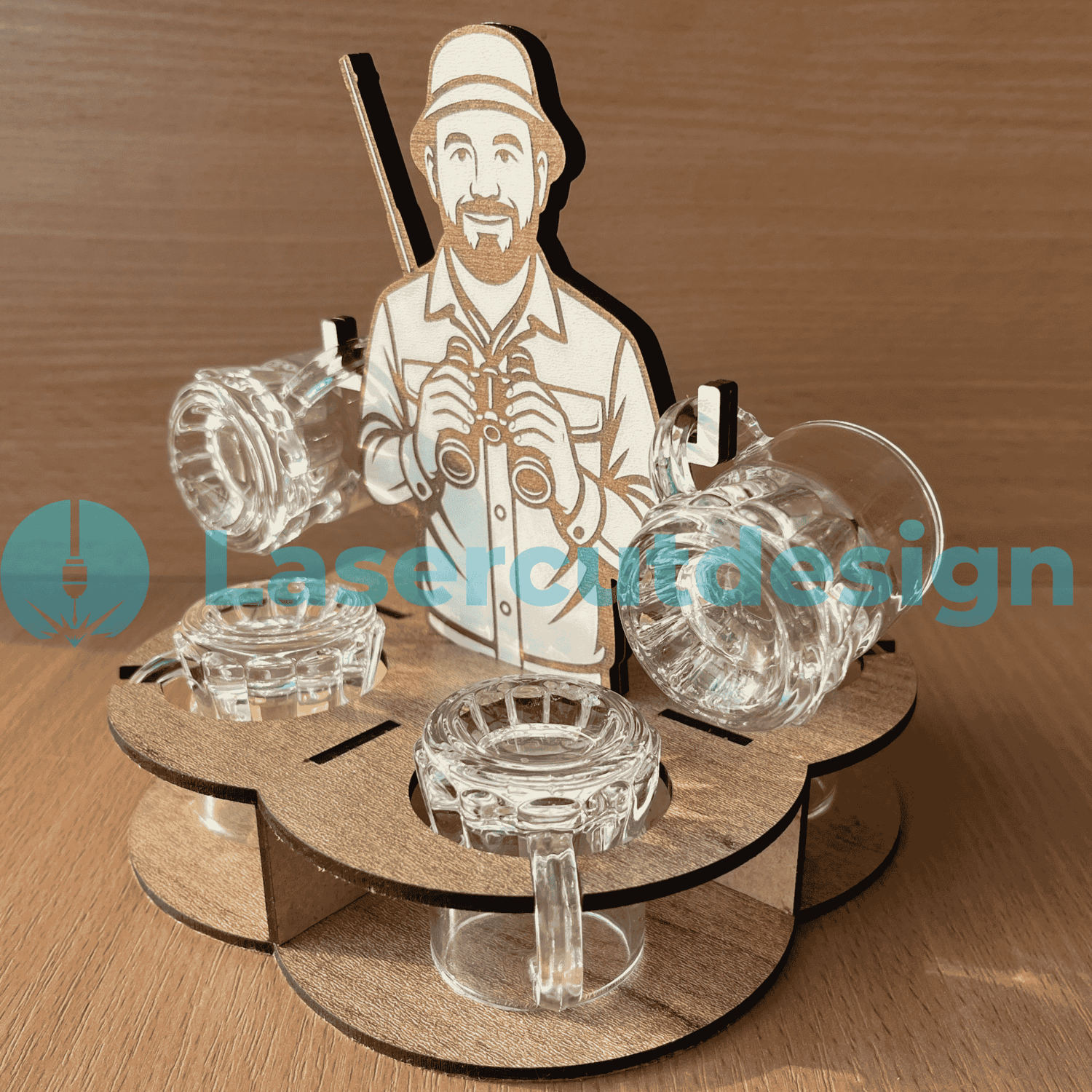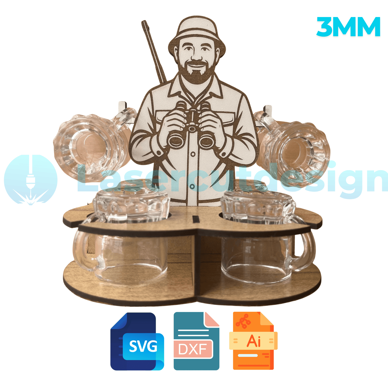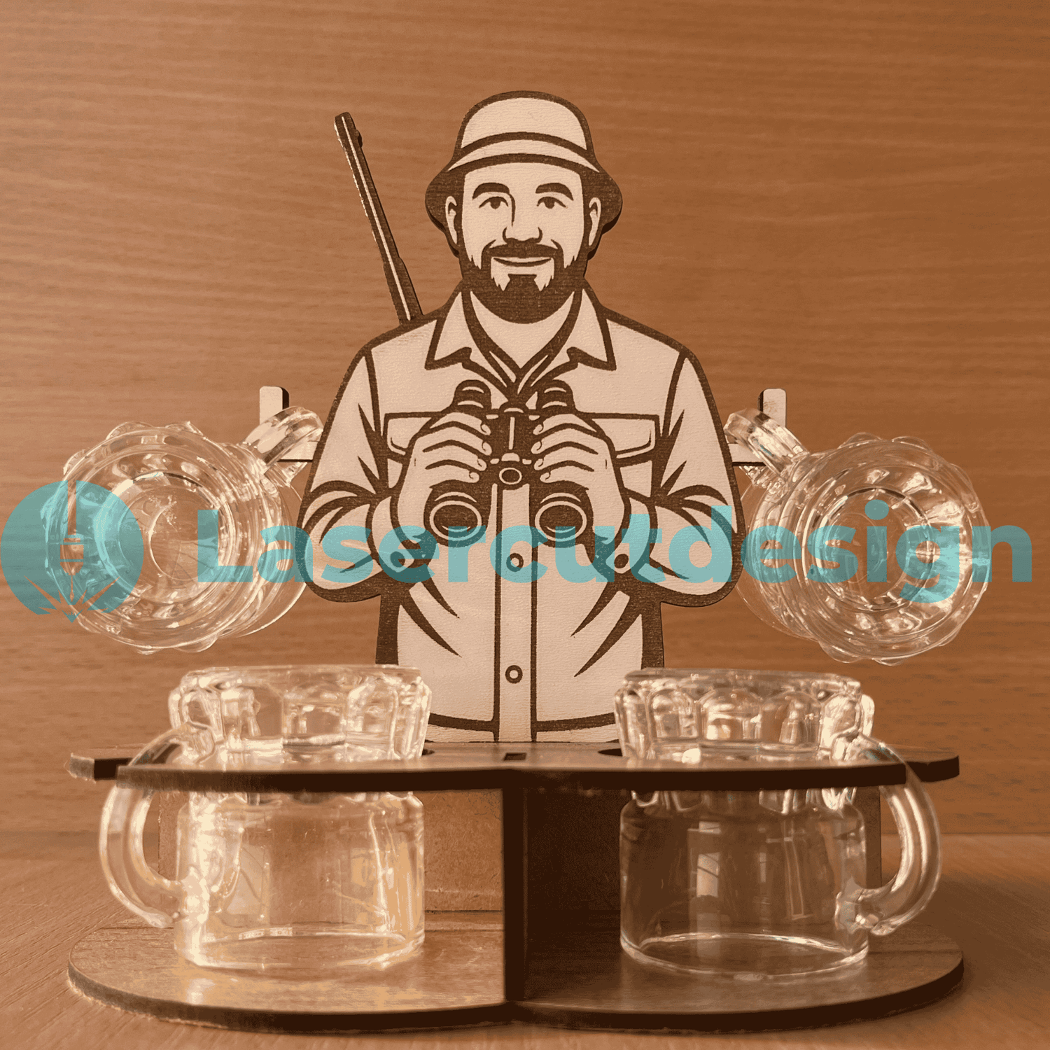 Laser Cut Shot Glass Holder Hunter with Binoculars Wooden Rakija Drink Stand SVG DXF AI Files for 3mm