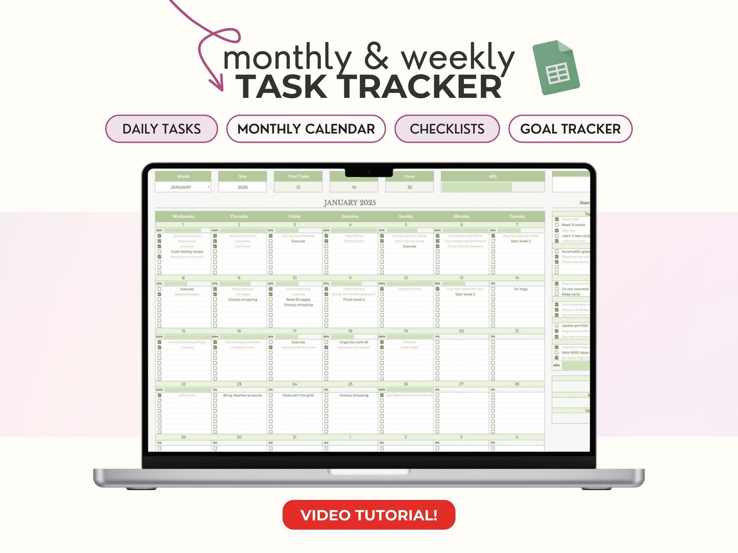 Monthly Task Tracker Google Sheets Daily Planner To-do List Weekly Goal Tracker Daily Checklist