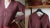 The pullover has a modular construction and consists of a rectangular central panel (worked in the round) and four sides, worked sideways from the central panel and joined at the underarms. Both back and front feature a V-neck opening, which is deeper on the front and options to adjust the both depths are provided. The sleeves and hem are worked top-down in the round.